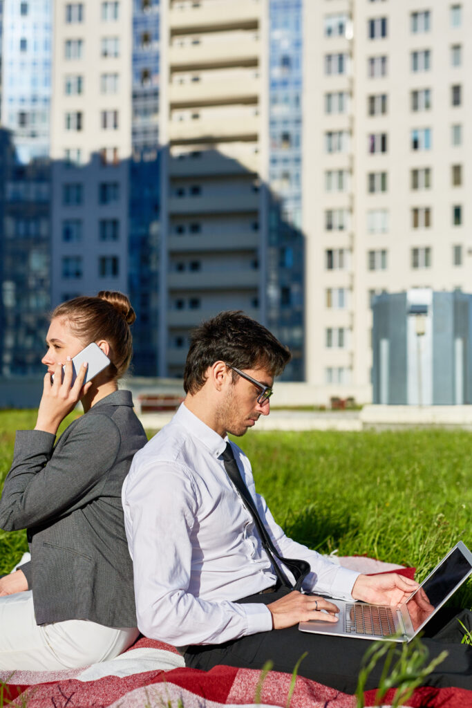 Businesswoman calling while her colleague networking outdoors Uzaktan İş İlanlarının Teknik ve Çalışma Özellikleri